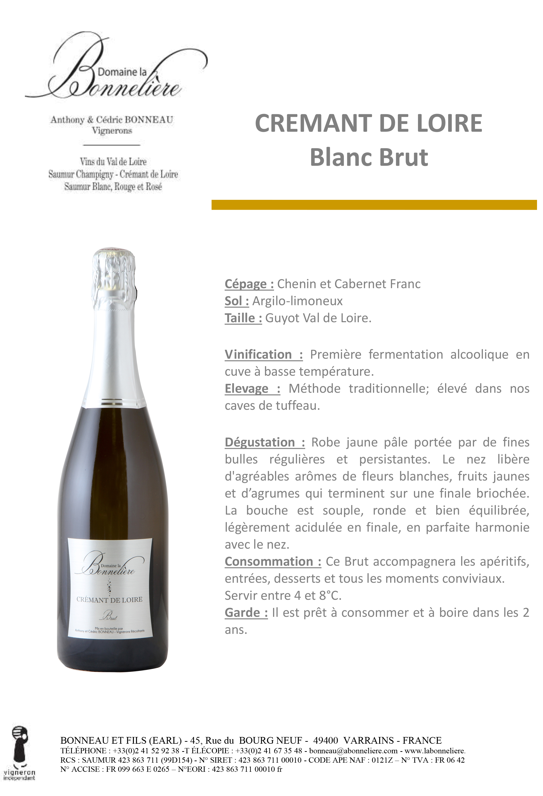 ÉLEVAGE: Méthode traditionnelle; élevé dans nos caves de tuffeau.